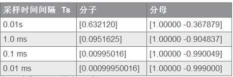 這樣做的目的是為了將內部采樣偏移 (inter sample deviation) 控制在可以接受的最小范圍內。為說明這種情況,表 1 列出了采樣率變化時對控制器系數(shù)的影響。在此例中,我們將一個簡單的單極點傳輸函數(shù)進行了離散處理。(1) 為傳輸函數(shù)的關系式。