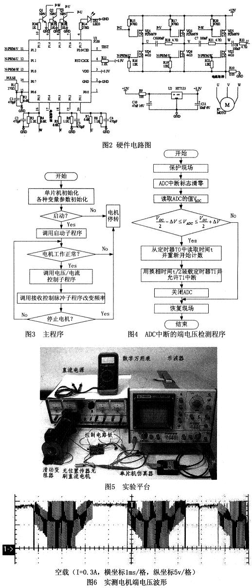 無刷直流電機的無位置傳感器控制的難點在于轉(zhuǎn)子位置信號的檢測,目前國內(nèi)外研究人員提出了諸多方法,其中反電動勢法最為簡單、可靠,應(yīng)用范圍最廣泛。普遍采用的控制方案為基于DSP的控制和基于專用集成電路的控制等,但是其價格高、體積大,不利于用在微型電機控制器中。本文介紹基于C8051F330單片機、檢測反電動勢法的無位置傳感器無刷直流電機的控制器,系統(tǒng)結(jié)構(gòu)簡單,體積超小型,價格低廉,運行性能良好。