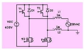 由于上橋臂的igbt工作在50hz的開關(guān)頻率下,實(shí)際上并不需要對(duì)該支路進(jìn)行濾波。因此對(duì)電路拓?fù)溥M(jìn)行優(yōu)化,可以得到圖14所示的發(fā)射極開路型拓?fù)?。這種拓?fù)涞膬?yōu)點(diǎn)是只有有高頻電流經(jīng)過的支路才有濾波電感,從而減小了輸出濾波電路的損耗。