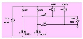 圖22 采用2個(gè)sic二極管、4個(gè)si二極管和分別輸出方式的npc逆變器拓?fù)?/div>