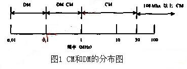EMI信號(hào)包括共模干擾信號(hào)CM和差模干擾信號(hào)DM,CM和DM分布如圖1所示。它可用來(lái)指導(dǎo)如何確定EMI濾波器網(wǎng)絡(luò)結(jié)構(gòu)和參數(shù)。