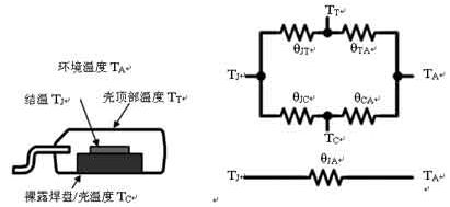通過二極管的壓降和通過的電流,可以計算功耗;通過二極管的壓降可以查到結溫,根據(jù)功耗、結溫和器件裸露銅皮或與芯片內部襯底相連的管腳的溫度,可以計算得到RθJC或RθJL。根據(jù)功耗、結溫和環(huán)境溫度,還可以計算得到RθJA。