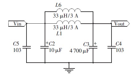 其中,L=33 μH,C=4 700 μF, 圖4 為低通濾波器電路圖。