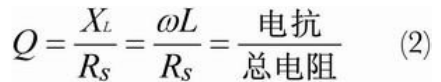 我們將電感線圈電抗(XL)與總電阻(Rs)之比稱為品質(zhì)因素Q,參見公式(2)。品質(zhì)因素被定義為電感器的品質(zhì)參數(shù)。損耗越高,電感器作為儲能元件的品質(zhì)就越低。