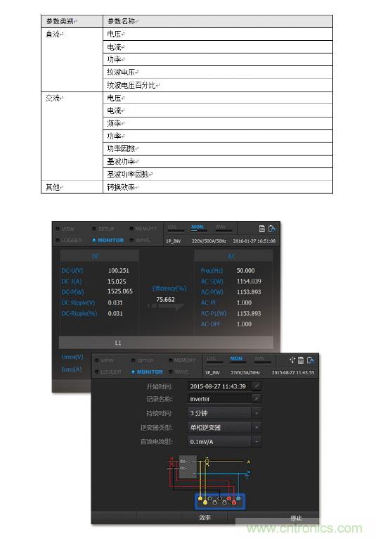 E6500電能質(zhì)量和能效分析儀可以快速測量逆變器轉(zhuǎn)換效率以及功率。目前支持單向逆變器與三相逆變器測量,主要測試功能如下: