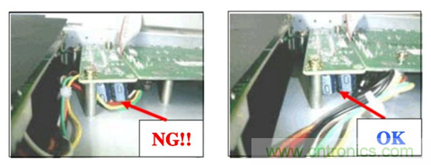 2 請確保電解電容防爆閥和chassis 之間要有2mm 以上的距離。此外組裝時防爆閥和chassis之間的間隙不要放入harness 才可以。如下圖: