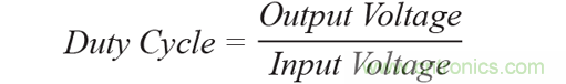 開關(guān)導通時)和斷開時間(當主開關(guān)斷開時)之間的關(guān)系。降壓轉(zhuǎn)換器的占空比由以下公式定義: