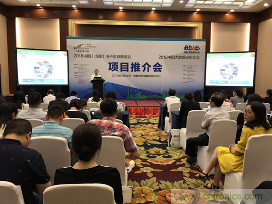 2018年5月24日下午, 2018中國(成都)電子信息博覽會(huì)暨2018中國大數(shù)據(jù)應(yīng)用大會(huì)在成都世紀(jì)城國際會(huì)議中心召開項(xiàng)目推介會(huì)?;顒?dòng)由中電會(huì)展與信息傳播有限公司總經(jīng)理宋偉主持,四川省經(jīng)濟(jì)和信息化委員會(huì)電子處蘇平處長,成都市經(jīng)濟(jì)和信息化委員會(huì)通用電子處副處長鄧敏出席推介會(huì)并致辭,中國電子器材總公司總經(jīng)理陳雯海向來賓介紹了2018中國(成都)電子信息博會(huì)項(xiàng)目整體情況和2018中國大數(shù)據(jù)應(yīng)用大會(huì)項(xiàng)目的相關(guān)進(jìn)展情況,四川省大數(shù)據(jù)產(chǎn)業(yè)聯(lián)合會(huì)常務(wù)副秘書長朱小軍,代表合作伙伴在推介會(huì)上進(jìn)行了發(fā)言,四川省其他30家相關(guān)學(xué)協(xié)會(huì)等也參加了本次活動(dòng)。另外,現(xiàn)場還有超過50家媒體及100家成都及四川地區(qū)電子信息產(chǎn)業(yè)相關(guān)企業(yè)及組織出席項(xiàng)目推介會(huì)。