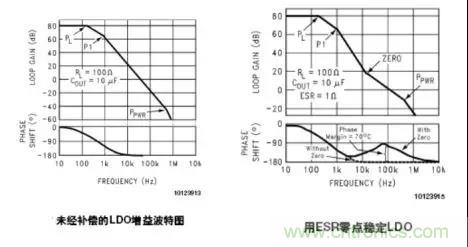 輸出電容的ESR在回路增益中產(chǎn)生一個(gè)零點(diǎn),用來(lái)減少過(guò)量的負(fù)相移。增加系統(tǒng)的帶寬,使更穩(wěn)定。零點(diǎn)處的頻值: