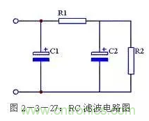 使用兩個(gè)電容和一個(gè)電阻組成RC濾波電路,又稱π型RC濾波電路。見圖2-3-27所示。這種濾波電路由于增加了一個(gè)電阻R1,使交流紋波都分擔(dān)在R1上。R1和C2越大濾波效果越好,但R1過大又會(huì)造成壓降過大,減小了輸出電壓。一般R1應(yīng)遠(yuǎn)小于R2。