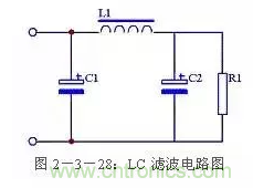 與RC濾波電路相對(duì)的還有一種LC濾波電路,這種濾波電路綜合了電容濾波電路紋波小和電感濾波電路帶負(fù)載能力強(qiáng)的優(yōu)點(diǎn)。其電路圖見圖2-3-28。