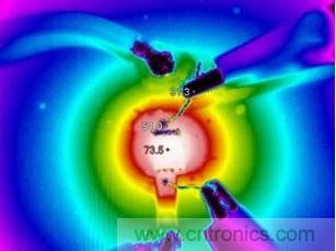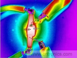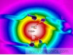 將10cmX10cm的二層PCB板的覆銅改為1OZ,重復(fù)上面實(shí)驗(yàn),測量的溫度如下圖所示。