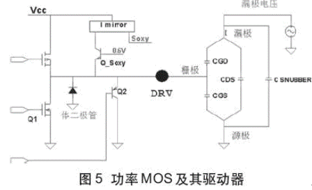 功率MOS柵極上產(chǎn)生的電流與漏極電壓和電容之間的關(guān)系可表述成如下: