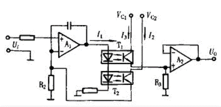 - 利用2個具有相同非線性傳輸特性的光電耦合器以及2個射極跟隨器