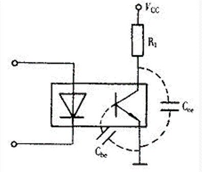 由于光耦自身存在的分布電容,對傳輸速度造成影響,光敏三極管內(nèi)部存在著分布電容Cbe和Cce,如圖4所示。由于光耦的電流傳輸比較低,其集電極負載電阻不能太小,否則輸出電壓的擺幅就受到了限制。但是,負載電阻又不宜過大,負載電阻RL越大,由于分布電容的存在,光電耦合器的頻率特性就越差,傳輸延時也越長。