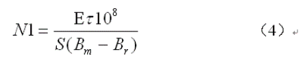 (4)式就是計(jì)算反激式開關(guān)電源變壓器初級(jí)線圈N1繞組匝數(shù)的公式。式中,N1為變壓器初級(jí)線圈N1繞組的最少匝數(shù),S為變壓器鐵心的導(dǎo)磁面積,單位:平方厘米;Bm為變壓器鐵心的最大磁感應(yīng)強(qiáng)度,單位:高斯;Br為變壓器鐵心的剩余磁感應(yīng)強(qiáng)度,單位:高斯),Br一般簡(jiǎn)稱剩磁;τ = Ton,為控制開關(guān)的接通時(shí)間,簡(jiǎn)稱脈沖寬度,或電源開關(guān)管導(dǎo)通時(shí)間的寬度,單位:秒;E為工作電壓,單位為伏。式中的指數(shù)是統(tǒng)一單位用的,選用不同單位制,指數(shù)的值也不一樣,這里選用CGS單位制,即:長度為厘米(cm),磁感應(yīng)強(qiáng)度為高斯(Gs),磁通單位為麥克斯韋(Mx)。