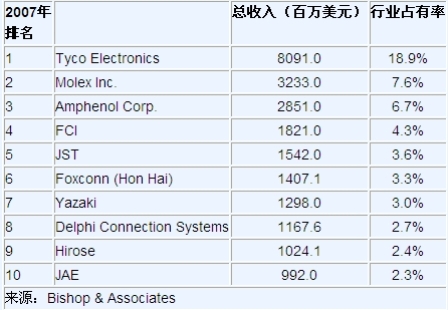 另外,北美將遇到最嚴(yán)重的收入下降,銷(xiāo)售額下降27.8%,達(dá)到67億美元,中國(guó)的連接器銷(xiāo)售額將碰到最好時(shí)期,收入將上升0.7%。