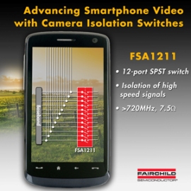 FSA1211具有超過(guò)720MHz的帶寬和高ESD (5.5 kV)特性,是高速數(shù)據(jù)路徑上隔離電容和保持信號(hào)完整性的最佳解決方案。此外,當(dāng)隔離多余的并行接口時(shí),F(xiàn)SA1211可以減小信號(hào)路徑上的EMI輻射干擾,提升射頻靈敏度降幅 (RF desense)。傳統(tǒng)的并行解決方案由于產(chǎn)生額外的“走線(xiàn)分支”(stub),所以會(huì)導(dǎo)致信號(hào)衰減,從而使相機(jī)模塊的圖像劣化。采用三個(gè)模擬開(kāi)關(guān)抑或是一種解決方案,但這會(huì)增加設(shè)計(jì)的復(fù)雜程度,并提高了整體材料清單 (BOM) 成本。相比而言,F(xiàn)SA1211以更為優(yōu)勢(shì)的成本提供了穩(wěn)健的隔離性能和簡(jiǎn)單的設(shè)計(jì)方法。