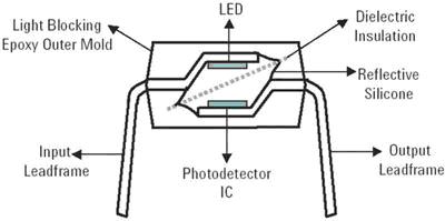 光學耦合器的工作基礎是LED發(fā)出的光通過透明的絕緣介質到光電探測器,這種介質提供2.5kV-6kV范圍的高壓絕緣。光耦合程度取決于光導材料。絕緣將通過光導材料本身或通過額外的光傳導介電材料實現。在任何情況下,LED的排列、光導材料、介電材料和IC都會直接影響光耦合和高壓絕緣的性能。