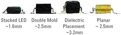 以前把兩個以上的光學耦合器集成到一個DIP/表面封裝的澆鑄封裝中是一個很大的挑戰(zhàn)。主要問題來自已有的封裝工藝及LED方塊的正面發(fā)光特點。