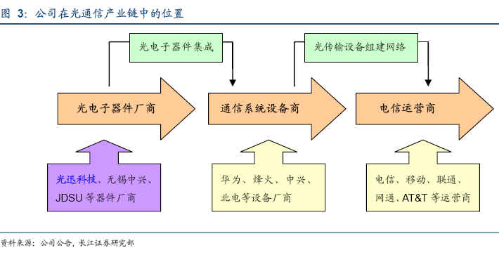 全球光通信行業(yè)長期向好--公司增長的基礎如圖3所示,光迅科技處于光通信產(chǎn)業(yè)鏈的上游位置,故公司的增長前景,取決于光通信行業(yè)的未來趨勢。
