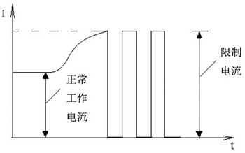 一旦開(kāi)關(guān)斷開(kāi),RS上電壓VRS=0,開(kāi)關(guān)又接通,產(chǎn)生振蕩,如圖3所示。輸出電流將小于限制電流。更好的辦法是通過(guò)FLAG端輸出過(guò)流信號(hào)給μC,使μC輸出低電平給負(fù)載開(kāi)關(guān)ON端,關(guān)斷負(fù)載開(kāi)關(guān)。圖2中未畫(huà)出μC及μC與負(fù)載開(kāi)關(guān)的連線。