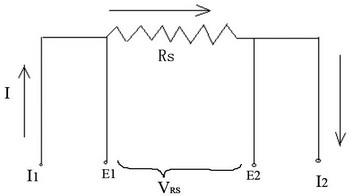 當(dāng)電流檢測(cè)電阻值已小到幾毫歐時(shí),其引線的電阻造成的誤差則不能忽略,為此開(kāi)發(fā)出四引線結(jié)構(gòu),如圖4所示。接近電阻根部的兩引線為測(cè)量VRS端,另兩根引線為電流的通路。在電阻根部測(cè)量RS上的電壓(消除了引線電阻的測(cè)量誤差)是精密測(cè)量方法,也稱為凱爾文(Kelvin)測(cè)量法。