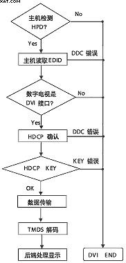 另外,從接收設備實際使用的角度看,HDCP的上述認證系統(tǒng)有一定的缺陷,使用中從DVI接口模式切換到其他接口模式,TMDS解碼處理器被PowerDown,HDCP識別將終止,中斷信號傳輸,意味著本次連接結(jié)束,然后顯示設備重新切換進入DVI接口模式,此時需要HDCP重新識別,則要求發(fā)送設備也要重新啟動,增加了使用的復雜性。