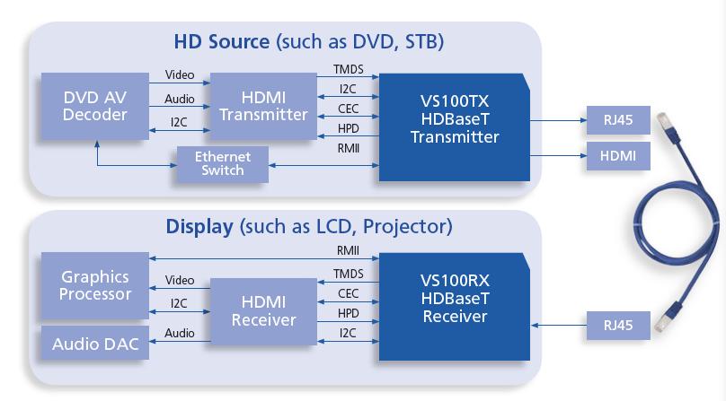 HDbaseT技術(shù)與現(xiàn)有HDMI傳輸方案配合,設(shè)計十分簡單,為STB和TV廠商提供更多賣點(diǎn)