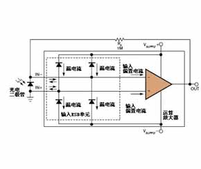 當(dāng)您研究JFET或者CMOS輸入放大器時(shí),術(shù)語(yǔ)“輸入偏置電流”便失去了它的意義。使用這類放大器,從放大器輸入引腳下拉或者吸取的電流實(shí)際上為輸入ESD(靜電放電)單元(請(qǐng)參見(jiàn)圖1)的漏電流。
