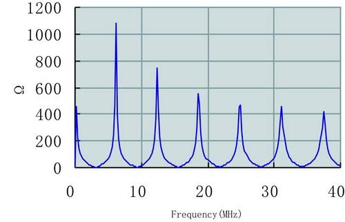 研究信道阻抗特性的目的主要是為了實現(xiàn)信道與發(fā)射機、接收機之間的阻抗匹配,當阻抗失配時,將造成信號能量的浪費,甚至出現(xiàn)啞信號點。由于中壓配電網(wǎng)的分支多,負載情況復雜,線路阻抗會隨距離、頻率、時間而變化,且變化范圍大,一般在幾十歐~幾百歐之間,圖2即為中壓電力線阻抗特性隨頻率變化曲線。故在實現(xiàn)寬帶網(wǎng)絡接入時,阻抗匹配比較困難;目前,通常采用在耦合技術中通過犧牲匹配性能來適合線路側寬范圍內阻抗的方法,也有系統(tǒng)在發(fā)射機端采用阻抗自適應的功率放大設備等,以達到較好的阻抗匹配效果。