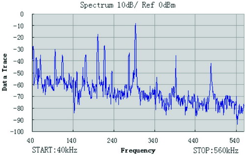 圖3國內農(nóng)村中壓線路噪聲特性曲線(40k-560kHz)