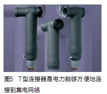 多數(shù)電力傳輸連接器采用直線型連接或T型連接(如圖5)。由于集電網(wǎng)絡(luò)位于地下,可靠性尤為重要。與機艙的機械部件需要耐磨與精密電子等需求不同,集電網(wǎng)絡(luò)不像渦輪機那樣需要連接提供高速及簡便維護性。安裝完畢后,集電網(wǎng)絡(luò)將工作多年。而集電網(wǎng)絡(luò)的故障將導(dǎo)致許多發(fā)電機停機。同樣,集電網(wǎng)絡(luò)到變電站的連接故障將導(dǎo)致整個風(fēng)力發(fā)電站癱瘓。