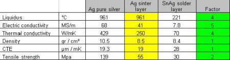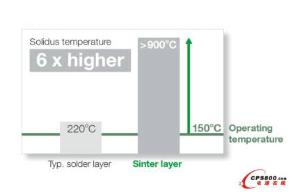 如果有人要考慮燒結(jié)層的厚度,燒結(jié)層的厚度比標(biāo)準(zhǔn)焊接層薄4.5倍,導(dǎo)熱系數(shù)大4倍。這使得燒結(jié)連接具有良好的熱性能。燒結(jié)層也表現(xiàn)出遠(yuǎn)高于焊接層的循環(huán)能力。這就得到一個(gè)事實(shí),即燒結(jié)連接中所用銀的熔點(diǎn)比今天普遍使用的無(wú)鉛焊料要高出4倍(見(jiàn)表1)。燒結(jié)技術(shù)高溫穩(wěn)定性表明連接層沒(méi)有老化。