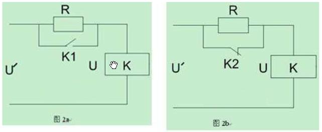 所謂返回系數(shù)kf是反映吸力特性與反力特性配合程度的一個(gè)參數(shù),也即表征繼電器動(dòng)作值與釋放值的差異性。不同用途的繼電器,往往要求不同的返回系數(shù),當(dāng)繼電器的返回系數(shù)不能滿足使用要求時(shí),可采取圖2所示的電路來改進(jìn)返回系數(shù)。圖2a為減少kf的電路,而圖2b則是增大kf的電路。圖2中的r取值應(yīng)適當(dāng),也就是說串入r后,必須使加至繼電器線圈的電壓仍要大于其動(dòng)作電壓(圖2a)或保持電壓(圖2b)。