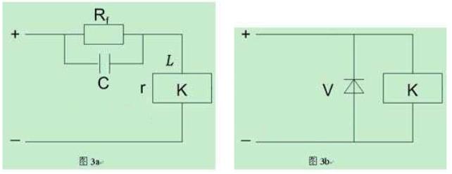 而在繼電器線圈兩端反向并聯(lián)一只二極管,即可達(dá)到延時(shí)吸合之目的,見圖3b。它的原理是在繼電器線圈斷電后等于給鐵芯增加了一個(gè)短路線圈,使釋放時(shí)間延長了。