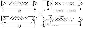 當(dāng)考慮終端匹配時(shí),有多種匹配方案可以選擇。最簡(jiǎn)單的就是在總線兩端各接一只阻值等于電纜特性阻抗的電阻(圖2a)。大多數(shù)雙絞線特性阻抗大約在100Ω至120Ω之間。這種匹配方法簡(jiǎn)單有效,但有一個(gè)缺點(diǎn),匹配電阻要消耗較大功率,對(duì)于功耗限制比較嚴(yán)格的系統(tǒng)不太適合。另外一種比較省電的匹配方式是RC匹配(圖2b)。利用一只電容C隔斷直流成分可以節(jié)省大部分功率。但電容C的取值是個(gè)難點(diǎn),需要在功耗和匹配質(zhì)量間進(jìn)行折衷。除上述兩種外,還有一種采用二極管的匹配方案(圖2c)。這種方案雖未實(shí)現(xiàn)真正的"匹配",但它利用二極管的鉗位作用迅速削弱反射信號(hào),達(dá)到改善信號(hào)質(zhì)量的目的。節(jié)能效果顯著。