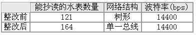 (1)網(wǎng)絡(luò)布局不合理。這時的結(jié)構(gòu)近似樹形,但RS-485總線不支持環(huán)形或星形網(wǎng)絡(luò)。同時,由于總線的不同區(qū)段采用了不同電纜,某一段總線上有過多收發(fā)器緊靠在一起安裝,或者是有過長的分支線引出總線,都會出現(xiàn)阻抗不連續(xù)點(diǎn)。所以應(yīng)該提供一條單一連續(xù)的信號通道作為總線。根據(jù)這一原則對網(wǎng)絡(luò)進(jìn)行了大的整改,采用單一總線將各個節(jié)點(diǎn)串接起來,同時進(jìn)行接地處理,如圖2所示。再次集抄的結(jié)果比先前要好,但還是有部分水表抄讀不到或數(shù)據(jù)不穩(wěn)定,未達(dá)到預(yù)期效果。表1是整改前后水表抄讀的情況。