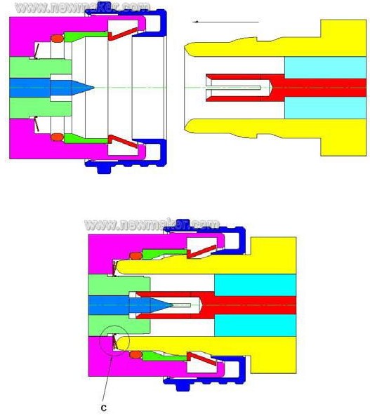 優(yōu)點(diǎn):能實(shí)現(xiàn)快插、自鎖功能,并有一個(gè)密封圈(Seal Ring)。
