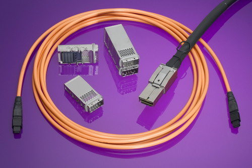 有源光纜組件:CXP 有源光纜(AOC)組件和可插拔收發(fā)器模塊采用了12個發(fā)射(TX) 和 12 個接收 (RX)通道,在多模光纖上提供每通道10 Gbps的數(shù)據速率,傳輸距離長達1km (3280.840’)。光纜終端的光電轉換由包含了專門針對低功耗和高可靠性而優(yōu)化的光引擎的集成式收發(fā)器模塊來完成。