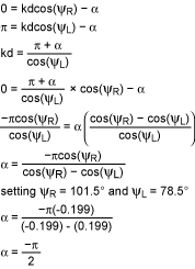 假設(shè)揚(yáng)聲器置于手持設(shè)備,揚(yáng)聲器間距d不會(huì)超過7cm,并假設(shè)頭的寬度是20cm,耳朵和手持設(shè)備的距離為50cm。則夾角ΨL和ΨR(x正半軸與聽眾左、右耳之間的夾角)為78.5°和101.5°。當(dāng)左聲道沒有信號(hào),而右聲道有信號(hào)時(shí),最合適的相差應(yīng)當(dāng)使右耳附近的聲強(qiáng)最大(圖5)。