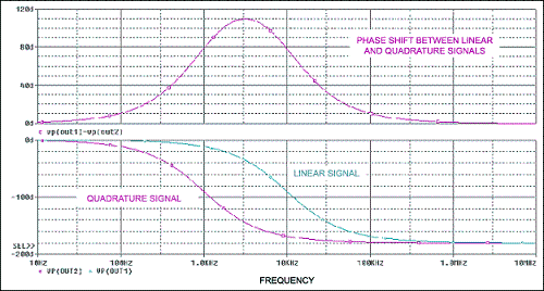圖8.圖7電路的頻率響應(yīng),在1kHz至10kHz整個(gè)頻率范圍內(nèi)提供近似的90°相移。