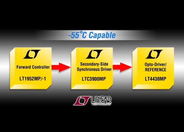 凌力爾特公司 (Linear Technology Corporation) 推出 LT1952/-1、LTC3900 和 LT4430 的高可靠性 (MP 級(jí)) 版本。這些器件合起來構(gòu)成一個(gè)高效率 (高達(dá) 95%) 同步整流隔離式正向轉(zhuǎn)換器,該轉(zhuǎn)換器規(guī)定在 -55°C 至 125°C 的節(jié)溫范圍內(nèi)工作,并在這個(gè)溫度范圍內(nèi)進(jìn)行了生產(chǎn)測(cè)試。LT1952/-1 是一款具有源變壓器復(fù)位功能的單開關(guān)正激式控制器,可向副端的 LTC3900 同步整流驅(qū)動(dòng)器提供定時(shí)信號(hào)。LT4430 是一個(gè)具精準(zhǔn)基準(zhǔn)電壓的副端光驅(qū)動(dòng)器,構(gòu)成了嚴(yán)格調(diào)節(jié)的隔離型正激式轉(zhuǎn)換器電路。LTC3900 和 LT4430 的最高工作節(jié)溫規(guī)定為 150°C。這種類型的正向轉(zhuǎn)換器設(shè)計(jì)非常適用于 12V、24V 和 48V 標(biāo)稱輸入電壓,這類輸入電壓常見于電信、數(shù)據(jù)通信、工業(yè)和軍事 / 航天應(yīng)用。