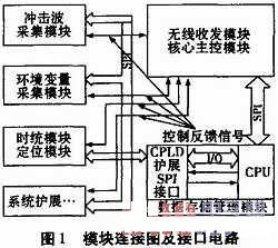 為了滿足系統(tǒng)測試任務(wù),無線傳感器節(jié)點采用模塊化設(shè)計,各功能模塊通過SPI接口鏈接。由于系統(tǒng)功能要求,使一個模塊與多個模塊鏈接通信,其接口電路SPI工作在不同的主從機模式,使用單一SPI接口主從切換,勢必降低模塊間通信速度與靈活性。依據(jù)可編程邏輯器件CPLD有其編程靈活、易擴展性,在模塊內(nèi)部擴展專用SPI接口,試驗證明SPI接口電路設(shè)計,有簡化模塊間連接、提高通信速度、系統(tǒng)擴展性強,以及提高系統(tǒng)整體性能的特點。