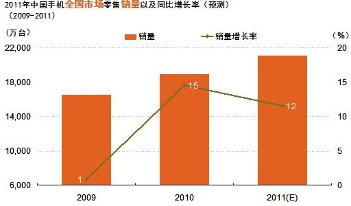 2011年全年手機(jī)市場(chǎng)銷(xiāo)量繼續(xù)上升