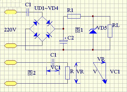 C1取值大小應(yīng)根據(jù)負(fù)載電流來(lái)選擇,比如負(fù)載電路需要9V工作電壓,負(fù)載平均電流為75毫安,由于Id=0.62C1,可以算得C1=1.2uF??紤]到穩(wěn)壓管VD5的的損耗,C1可以取1.5uF,此時(shí)電源實(shí)際提供的電流為Id=93毫安。