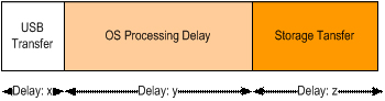 雖然USB速度快了十倍(從480Mbps 到 5Gbps),但是真正的吞吐量將遠(yuǎn)遠(yuǎn)低于理論值,因?yàn)閁SB延時(X)比操作系統(tǒng)處理延遲(Y)和存儲傳輸延遲(Z)都小得多,其相對于總延時可以忽略不計(jì)。Z延時可以通過選擇更好的存儲設(shè)備來改進(jìn),但是Y延時,則需要通過更有效地系統(tǒng)設(shè)計(jì)來管理。