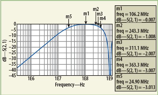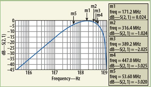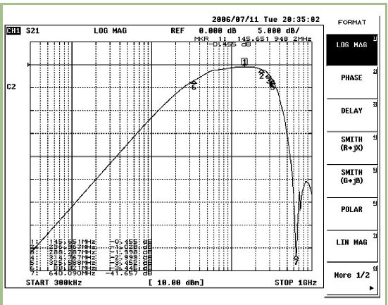 盡管三組結(jié)果是由不同的方法求出的,但它們彼此吻合良好。分析(MATLAB)和數(shù)值(ADS)模型獲得的響應(yīng)與實驗獲得的響應(yīng)(VNA測量值)比較起來十分接近。利用分析和數(shù)值方法獲得的值近似相等,但與實驗結(jié)果相比有少許差異。最好的解釋是,理論模型沒有把變壓器結(jié)構(gòu)中所采用的各元件的復(fù)雜特性完全考慮在內(nèi),而是按照幾乎“理想”的元件來建模的。