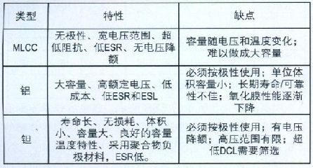 鑒于醫(yī)療設(shè)備對(duì)高可靠性的要求,本文就商用鉭電容和醫(yī)用鉭電容的設(shè)計(jì)取舍進(jìn)行了舉例,并介紹了有助于改善性能的一些新發(fā)展。本文還重點(diǎn)介紹了電容技術(shù)的一般性選擇標(biāo)準(zhǔn)和可以在便攜式醫(yī)療設(shè)備中使用的封裝技術(shù)的進(jìn)展情況。在便攜式醫(yī)療設(shè)備中最常用的大容量電容類型有多層陶瓷電容(MLCC)、鋁電解電容和固體鉭電容。表1就每種電容技術(shù)的某些一般特性和可能的缺點(diǎn)進(jìn)行了介紹。
