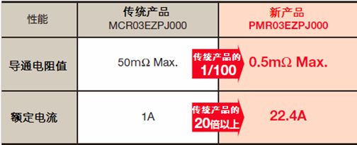 1) 導(dǎo)通電阻值達Max0.5mΩ(是傳統(tǒng)厚膜型的1/100)